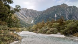 ~おまけ~微動だにせず穂高連峰を見上げる〇〇エモン。園内某所からの1カット。